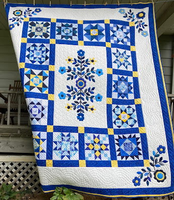 The first post about blue Stars Around the Garden was posted September 4, 2020. It has taken me less than a year to applique, piece and hand quilt this quilt. That is actually good progress on a hand appliqued and hand quilted quilt.